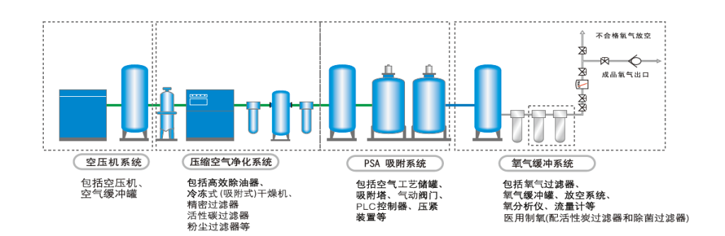 • Nguyên lý PSA: Ngược lại, PSA chỉ sử dụng áp suất khí quyển để tái sinh, đòi hỏi áp suất khí nén cao hơn để đạt được hiệu suất tương đương.